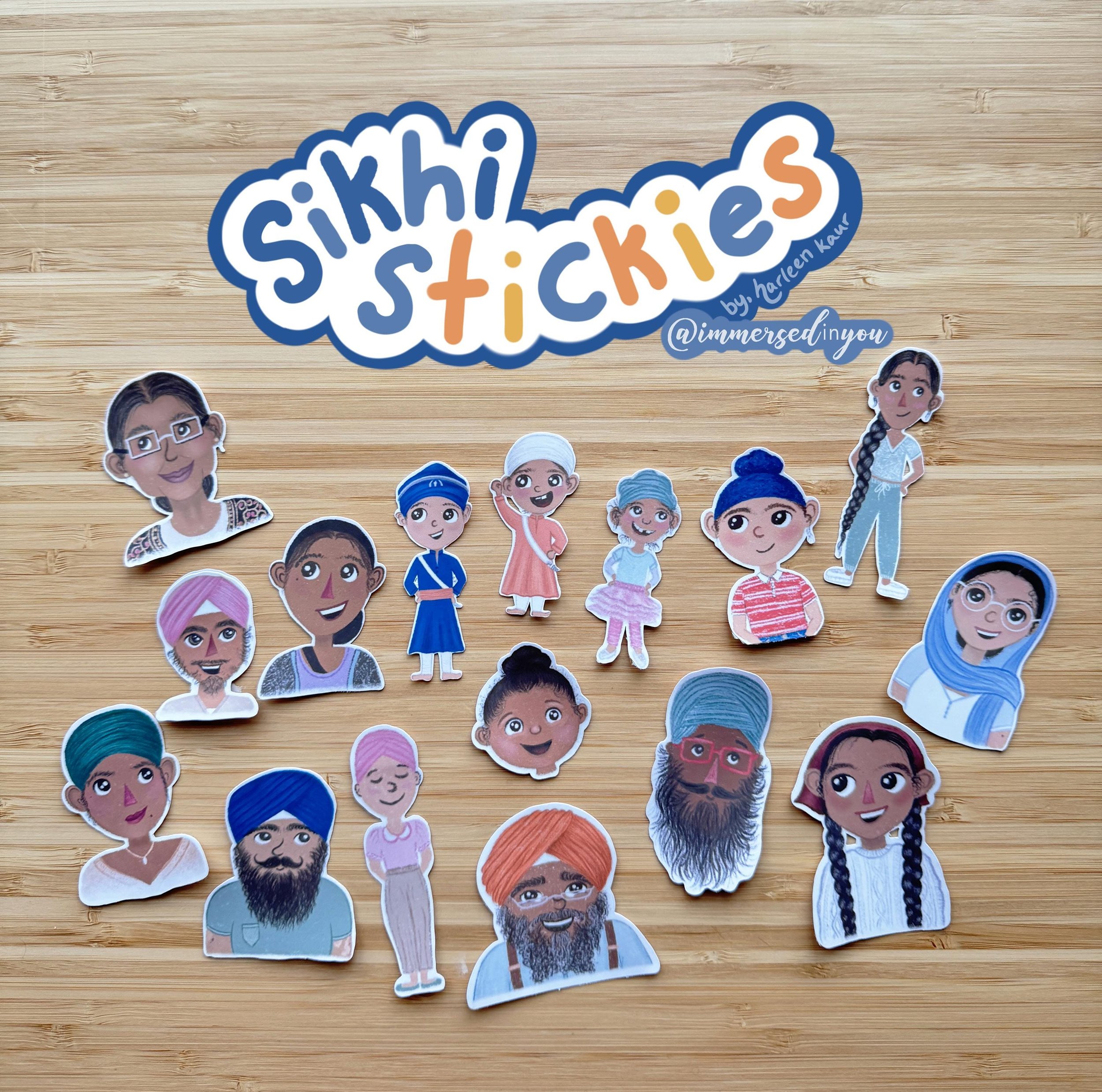 a multipack of 16 individual stickers, all of different sikh characters. our sangat is diverse and each sikh is unique - my hope is that you will find the faces and spirits of many that you know & love in these characters. hopefully this will be the first pack of many. your support ensure the creation of more and more stickers that look like us! representation matters.